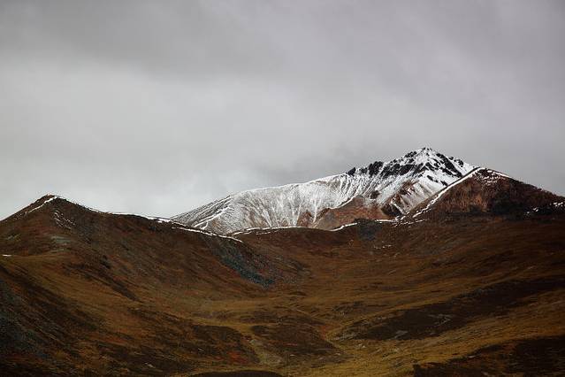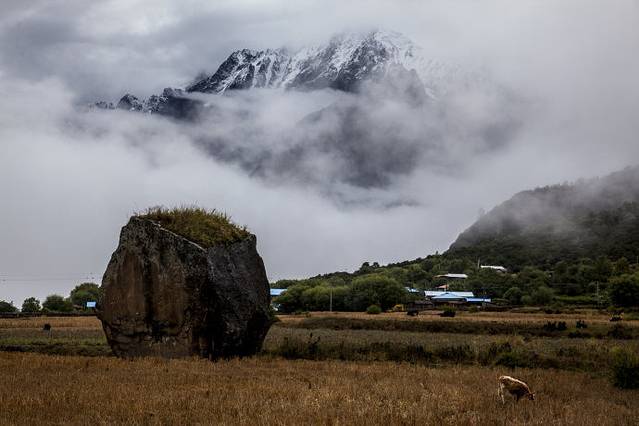 说运气,算不上有运气。这个季节不是看南迦巴瓦峰的季节,七八月都是林芝的雨季,九月雨季刚过,云雾还都太多,南迦巴瓦峰很难看到。十一月到来年的四月才是看它的时候。说没运气,也有还那么一点点,虽然看不到主峰,但是南迦巴瓦峰也算是看到了。特别是到专门看山峰的观景台上,当黑色的山体和雪白色的山顶,映到您眼前的时候,真是值得感叹。具体的地点,如上文所讲,是没有人告诉的,但是看到路标,似乎是在派镇以东,还未到直白村的一个地方。说起来,看高山,南迦巴瓦峰是一个好的选择,特别是在大峡谷看,角度更为好一些。珠峰是全世界最高峰,8848米,但是,一般人能够到达靠它最近的地方,就是绒布寺、珠峰大本营。这就算到头了,除了专业的登山队员,也就到此而止了。而这个地方距离珠峰峰顶,直线距离是二十公里。因为大本营的高度是5200米,所以垂直高度有三千六百米。看到的眼里的珠峰,在视角上,也就不到十度。而大峡谷距离南迦巴瓦峰大约是十一公里左右。南迦巴瓦峰的高度是7787,垂直高度达到四千米,视角有二十度。这样看山峰,高大宏伟的山峰如同镇在眼前的一座高墙,一尊神,气势磅礴,威严神圣,直接让你领悟山神伟大之处。