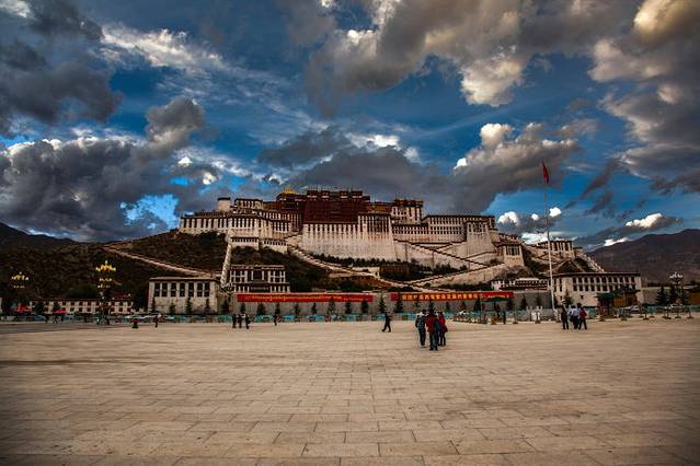 先说布达拉宫,以前在网上看到过别人拍的“日出时分的布达拉宫”,是位于布达拉宫左前方向,顺光拍的。拍摄位置应该在大昭寺一带某个宾馆楼顶。因为拍摄的位置高一些,能够把布达拉宫衬在远处的高山之下,阳光打在红白两色的建筑上,衬在暗色的高山之前,确实挺漂亮。当时还没有到拉萨,对于它的地理环境并不了解,感觉应该还有其它的角度。到了拉萨之后才发现,没有办法,更高一些,更正一些的地位真是很难找,目前最好的位置应该上药王山上,但是因为药王山已经被圈起来了,游人不让上了。布达拉宫西南侧有一个收费的观景台,位置并不是最好的,太低了,而且也有些偏。但是,看一看布达拉宫周边,还就这个位置稍高一些。