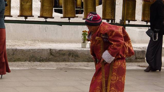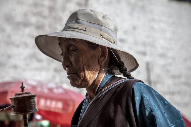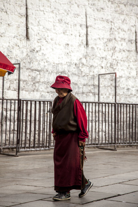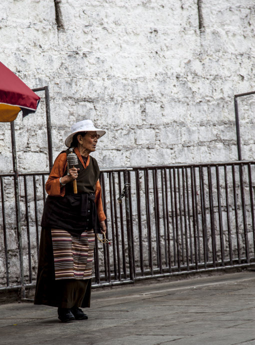 老人已经七十岁了,以前也算是公职人员。老人汉话说得很流利,但总有一些口音,听不太清楚。他用不同的词语说了几次,也没听明白他以前是什么一个单位,做什么样的工作。最后他讲,“装卸工”,算是明白他以前的工作性质。虽然身为“装卸工”,但老人退休工资却很高,每个月有四千多元。老人自己似乎也明白这一点,讲因为在拉萨嘛,不比内地,是高了一点。当下儿女都已经成家,他一个人过得很自在。我问他每天都干些什么?他讲,上午转经,下午打麻将,晚上喝一点啤酒。我听了之后,笑了起来。我说,藏民转经是传统,既是一个信仰的实践,对于身体也有好处,算是身体锻炼;但打麻将却是汉民的陋习,并不简单地讲是一种游戏。而喝啤酒也算不上是藏民的习惯,为什么不喝青稞酒呢?他讲青稞酒度数太高,他血压高,对身体不好。而麻将,现在人们都在打,不分汉民和藏民。现在已经成了拉萨人的一个习惯性的娱乐项目。确实在拉萨街头,就能够看到很多人在打麻将。在之后的行程之中,我们的藏族导游也曾玩笑地讲过,某句藏语的经文,在打麻将的时候特别灵!当你想自摸的时候一定要念这句经文!因为不打麻将,所以也没有记住他念的那句经文。如果说藏人与内地的人在宗教信仰上有区别的话,那么在玩麻将赌博上似乎都有一样的嗜好。