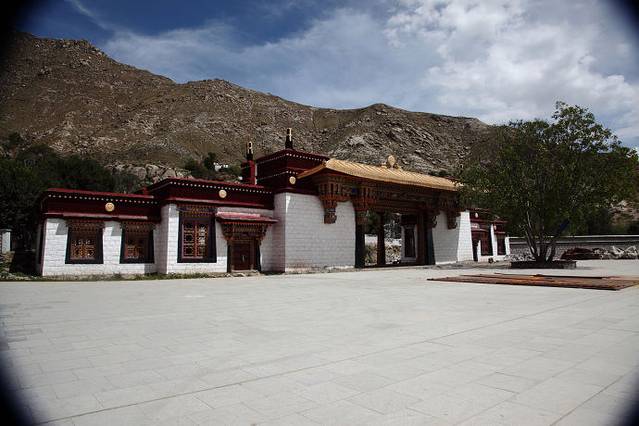 上午去了哲蚌寺,去哲蚌寺可以坐公交车。因为哲蚌寺在山上,所以下了公交车,还要坐转运的大巴或小巴(二块钱)。从下公交车到哲蚌寺的大门口,大约有两公里的样子。哲蚌寺最出名的是每年的八月(藏历六月三十日)的雪顿节上的晒大佛。雪顿节的时候,据说有十几万人去看晒大佛,那场面绝对壮观。因为我去的时候,什么节日也不是,也不想去看寺院里的佛,只想到了寺外看一看晒佛的那个山坡。可到了寺外,啊!还要爬山!哲蚌寺就是建山坡上的一处寺院,而且整个建筑群十分的宏大,没有个半天儿的时间,真是走不完。其实就想看一看晒大佛的那个山坡。但是“不见庐山真面目,只缘身在此山中”。在哲蚌寺跟前,一大片高大的寺院建筑挡住了后面的山坡。那片晒佛的山坡,还真是看不到。因此在寺外拍了两张照片,坐着大巴就回来了!真不想把刚攒的那点体力都浪费在爬山上。