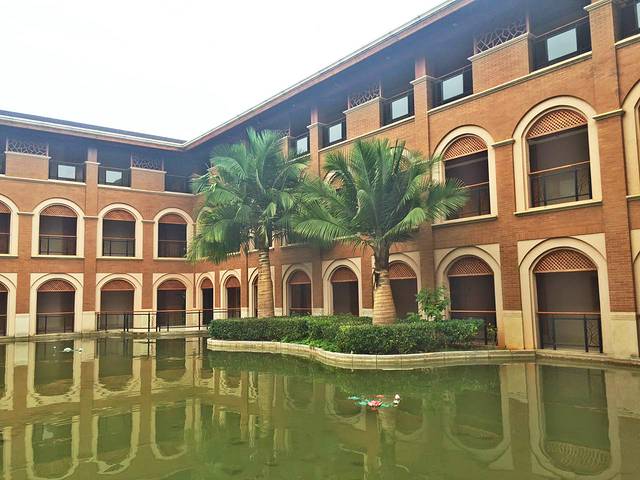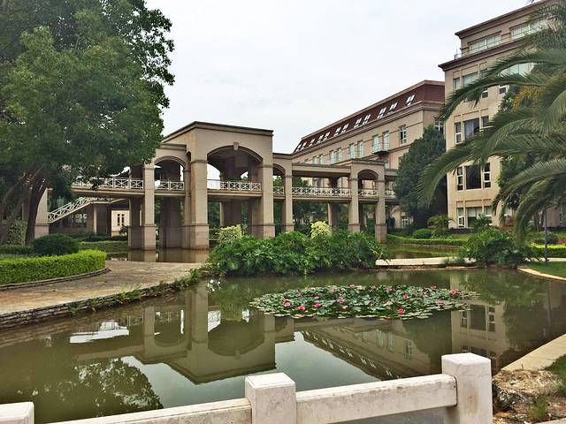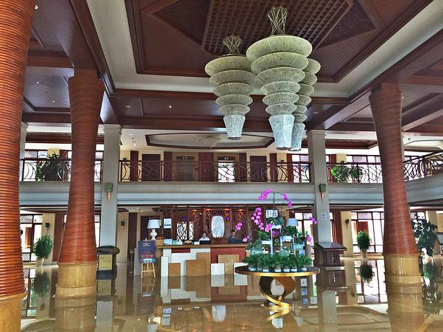 湖泉酒店A座是东南亚泰式建筑风格,放眼看到的都是木质的颜色与绿色植物相互映衬。
