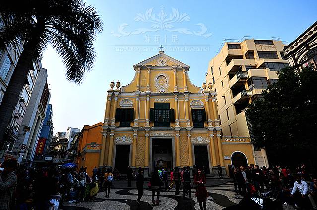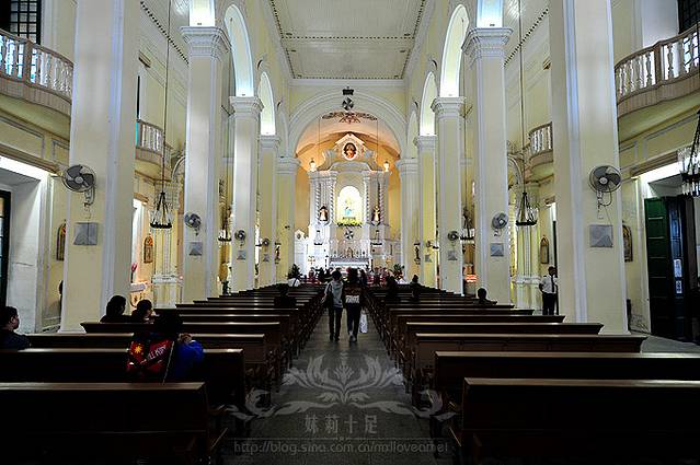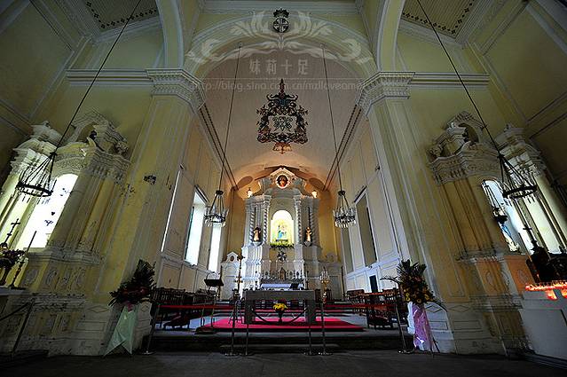 去看大三巴要路过玫瑰堂,全称是“玫瑰圣母堂及圣多明我教堂”,外观很容易跟圣若瑟圣堂混淆,好像还有一个叫做圣老楞佐教堂(风顺堂)的,长得也差不多……玫瑰堂是雷神点名要去的地儿。他说他要许愿。