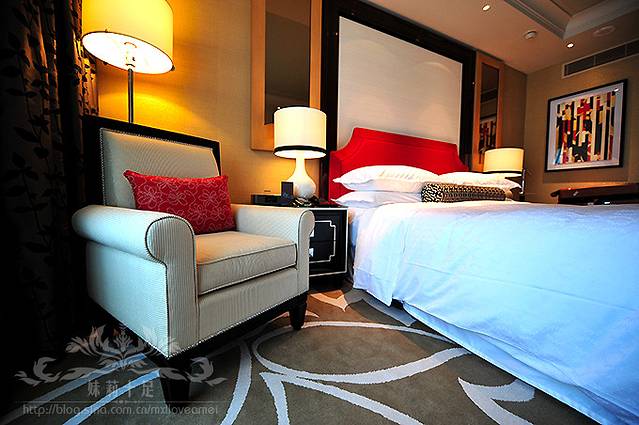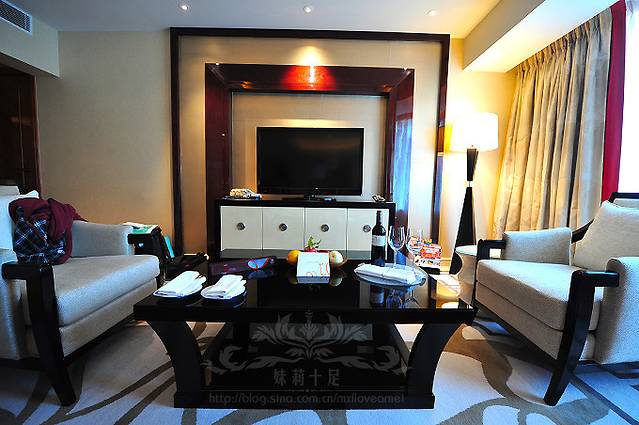 一进门就看到欢迎信和欢迎果盘。酒店共有七种房型,888元的双床房和大床房已经抢购一空了,雷神的港澳通行证1月16日拿到手,我们23号就出发了,所以实在没有更多的时间抢到特惠房,只能选了也有折扣但略微贵一些的豪华套房,好处是可以享用喜来登行政酒廊(行政酒廊可是我的最爱~哇哈哈哈~~)。套房位于酒店29-39层,面积大概在83-125㎡,因为楼层高所以视野很好。行政套房和豪华套房都很不错,区别不大,可根据自己的不同需要选择适合的套房。豪华套房的电视更大一些,一会儿详细介绍。酒店房价都是随时变化的,甚至每天都不同,所以想了解详细价格就去酒店官方网站上查询吧。