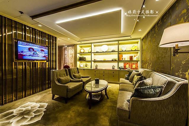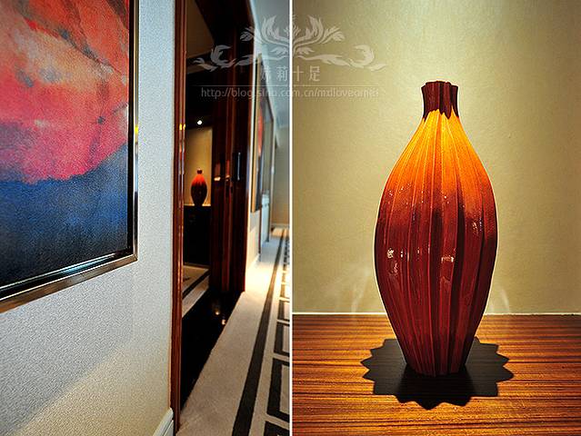 就是这里啦!Media Room,是个类似包厢似的单独房间,配有52英寸液晶大电视(行政套房配的是46英寸)、环绕立体声音响和特大沙发床,绝对是个看大片的宝地。我跟雷神都最喜欢这间!刚刚说到房间艺术品多,注意看墙上的画哦,还有电视旁边的罐子。