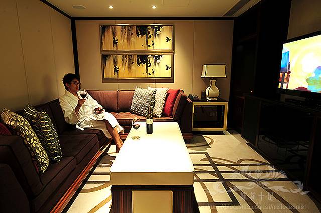 澳门首夜,我们选择热水澡后,喝红酒,看Discovery~~~我俩最爱的大Media Room,超给力!