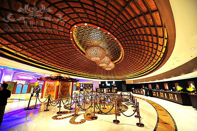 我们进入“亚洲拉斯维加斯”时刚好是中午,还没有灯红酒绿的感觉,但是一进喜来登酒店大堂,浓郁的赌城风就扑面而来了。金碧辉煌的大厅后面就是热闹的赌场,雷神忍不住“哇噻”的同时拍下了在澳门之行的第一张照片。
