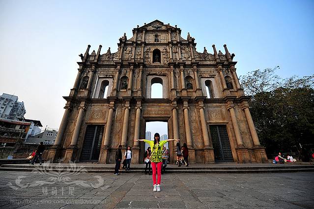 这就是大三巴牌坊啦,澳门最具代表性的名胜古迹,其实是圣保禄大教堂遗留下来的前壁,此教堂糅合了欧洲文艺复兴时期与东方建筑的风格而成,体现出东西艺术的交融。雕刻精细,巍峨壮观,世界各地的人慕名而来,我跟雷神也来瞅瞅。没啥特别的,拍两张照片就差不多了。