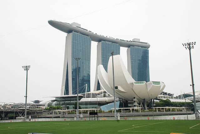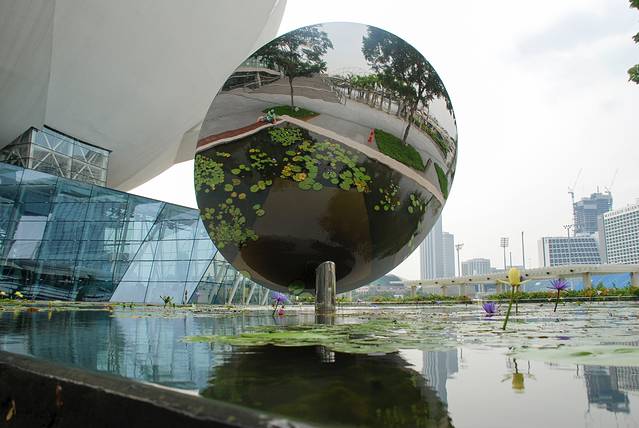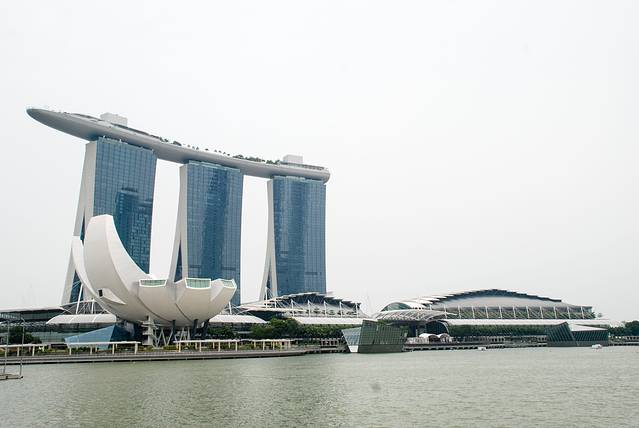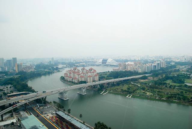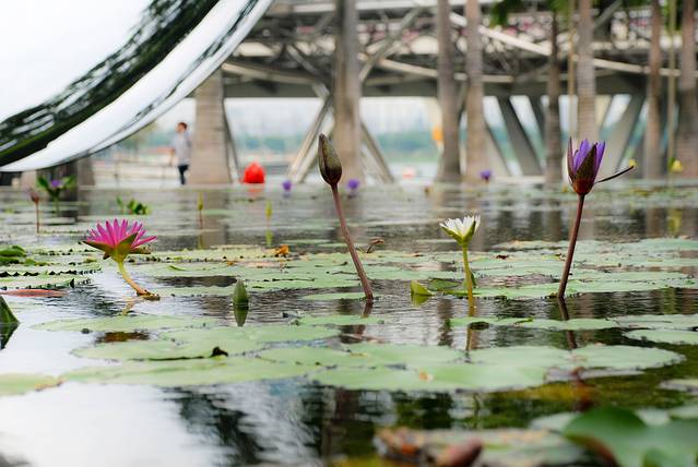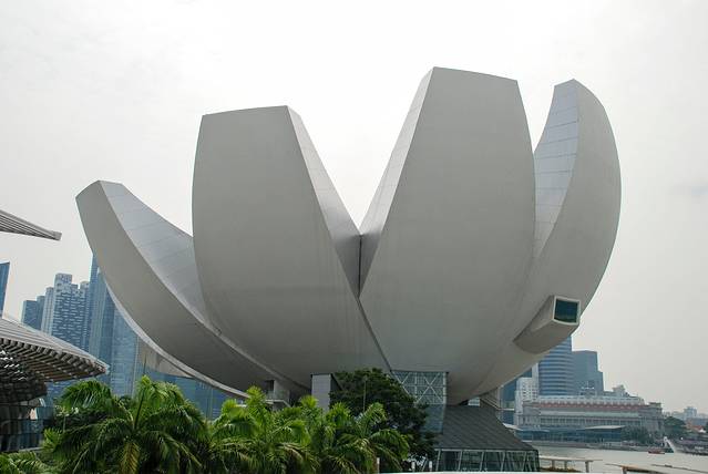 眺望整个滨海湾,可以看到金沙,大榴莲还有这个类似花瓣状的艺术科学博物馆。