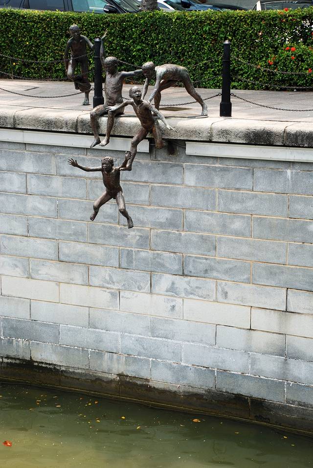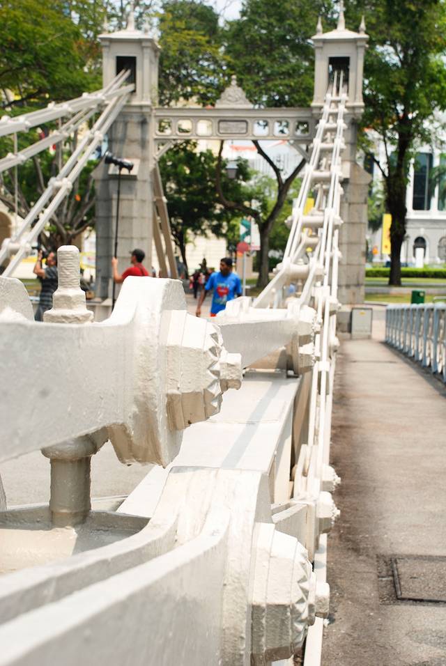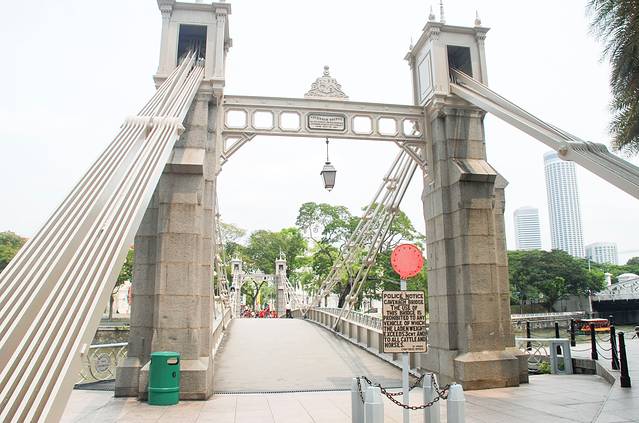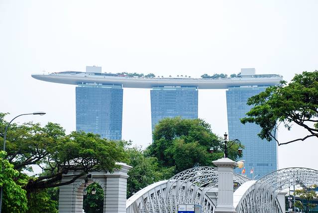 早上9点出发,坐红线地铁到来福士坊(Raffles Palace)下车,出来之后没走多少就看见了一条河,远眺就可以看见金沙酒店。走着走着看到了一座桥。