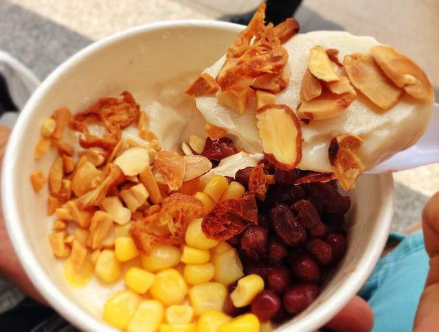 小印度没有多长时间就回去了,觉得没有什么东西。于是坐紫线地铁倒蓝线到武吉士(Bugis)逛街。一出地铁还没上去,就发现了好吃的!