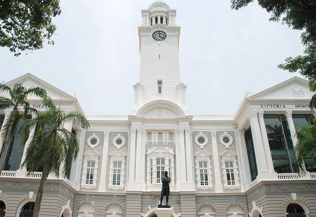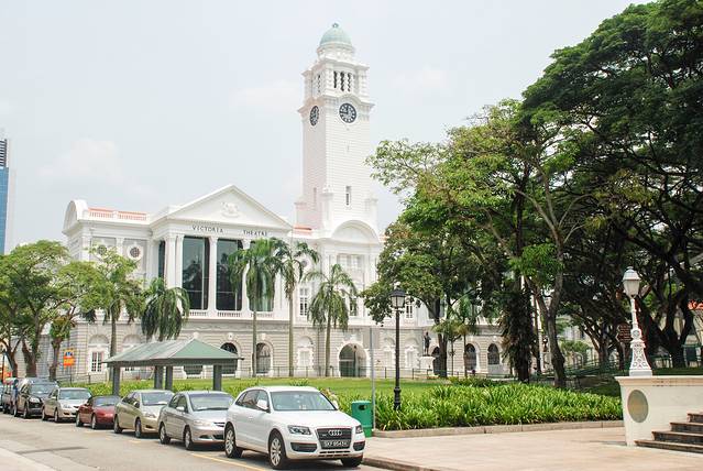 过桥之后就看到了著名的维多利亚剧院。新加坡天气是湿热的,像蒸桑拿,没走一步都感觉要出好多汗,正好看到剧院是免费开放的,所以干脆进去吹吹空调也顺便欣赏一下。