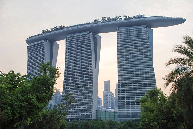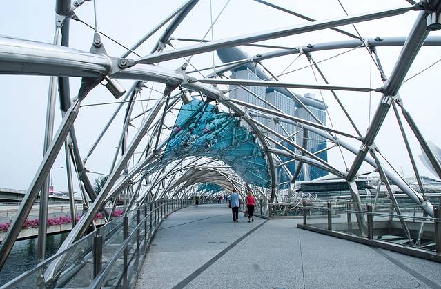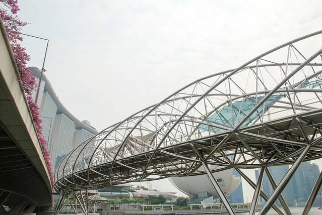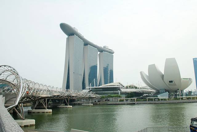 吃完冰淇淋顺着河边回来,就回到了波浪桥。顺着波浪桥过去就是滨海湾的另一边,也就是金沙啦!
