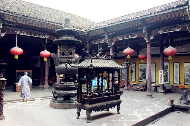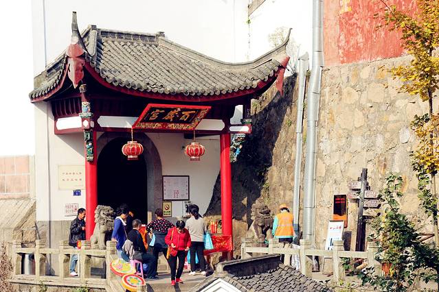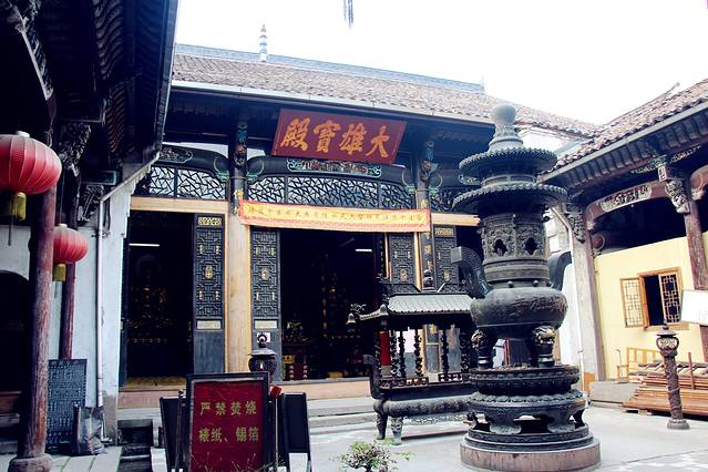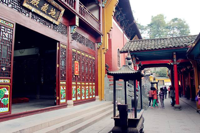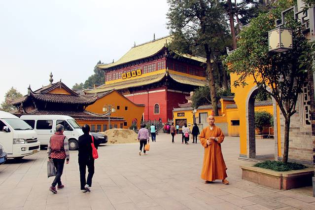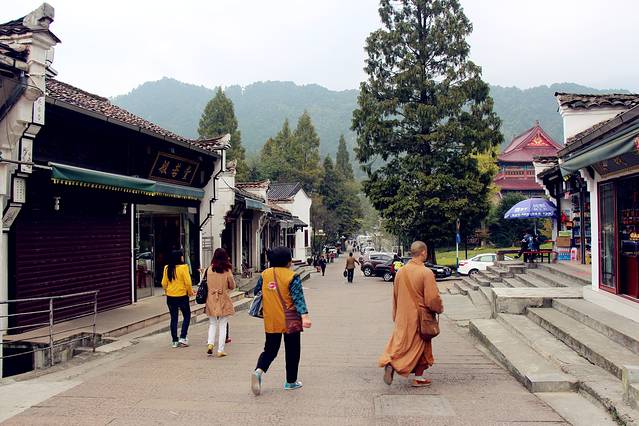 我们步行来到旃檀林的三大殿,途径看到的九华街的店铺