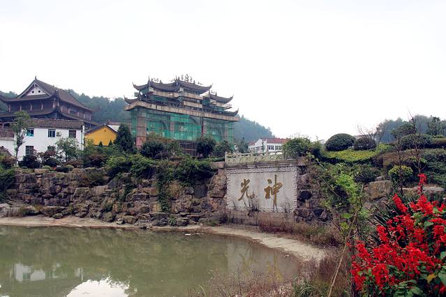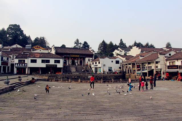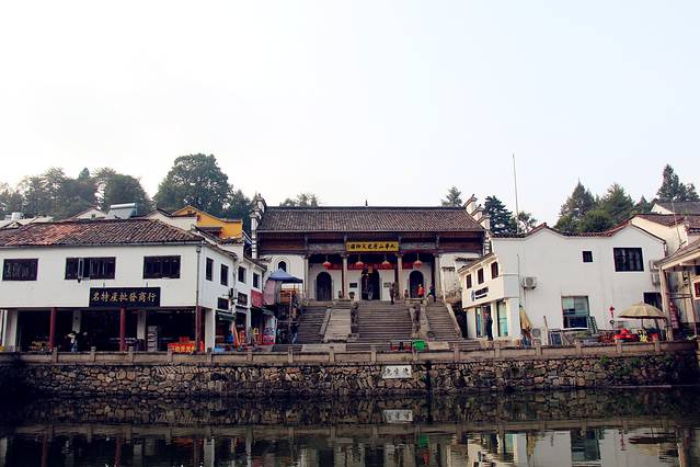 化城寺,位于九华街中心区,下方的池塘是放生池