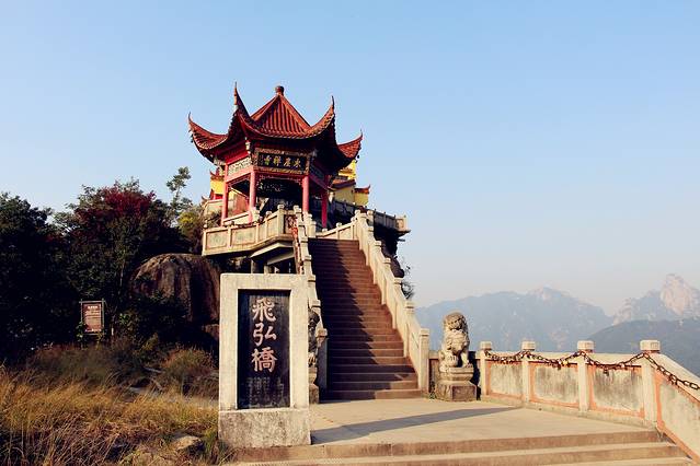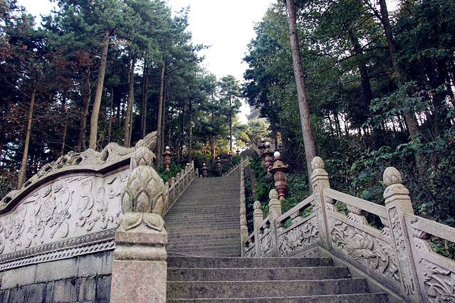 天台寺位于九华山天台景区的天台峰,海拔1306米。天台寺是游客、佛弟子和进香的居士们必到之处,攀登天台寺有两条路,一条是索道,另一条是徒步攀登天台寺,乘坐索道缆车上天台只需要五分钟就能到达,但还需徒步行走2000余米的路,穿越在山谷之间,方能到达古拜经台,这段路比较平缓,从古拜经台还要再登上888个台阶才能到达顶峰天台寺,这段路比较陡,要有好的体力,但也不要害怕体力不支,我看来这里的大人孩子都能登上天台寺顶峰,也许是心中有一种信念。徒步攀登天台寺,可要根据自己的体能决定是否徒步攀登天台寺,中途一但体能透支,可没有任何交通工具哟,对登山爱好者来说可谓是小菜一碟;徒步从山下攀登到顶峰,大约需要3个多小时才能到达天台寺顶峰。