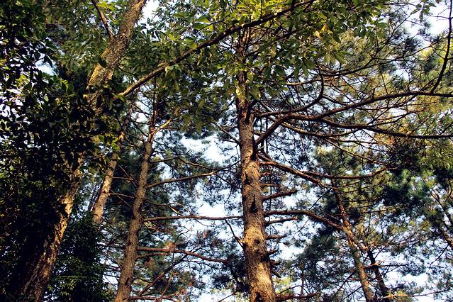 山上的松林非常茂密翠绿,穿过这段松林就是钟楼