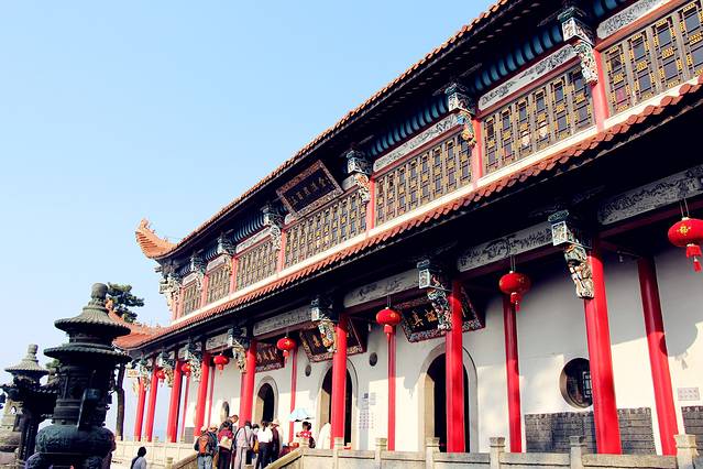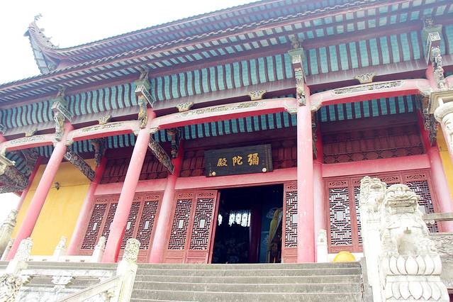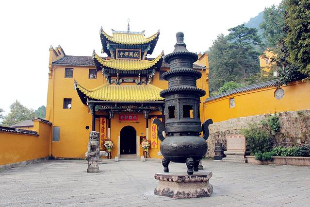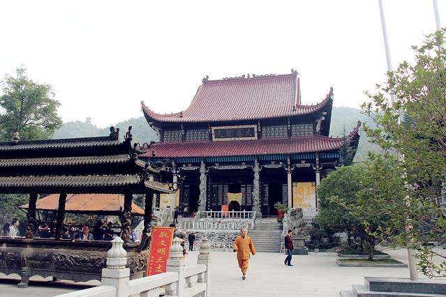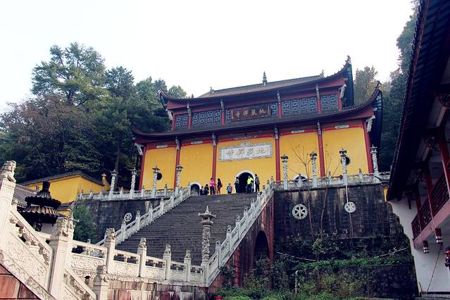 化城寺是九华山的开山祖寺,传说是释迦摩尼佛祖点化而成,故称“化城寺”(有一典故,不妨去看看)。化城寺位于九华街,坐落在芙蓉山下。迎面是一座圆形广场,广场中间有一个月牙形的莲池,因此得名“月牙池”,传说为当年地藏王菩萨放生池。