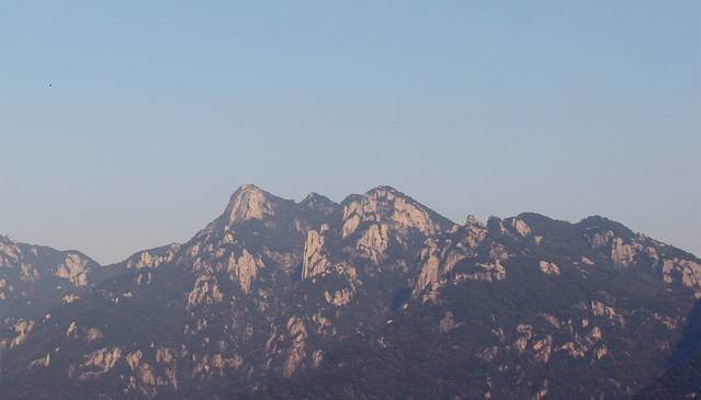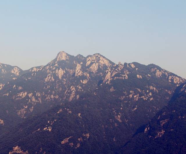 这座雄伟的大山便是天台峰,海拔1342米;山峰的中间隐约能看到天台寺。