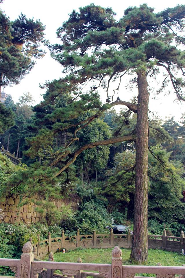 乘坐缆车上山后,穿过这片松林就是百岁宫