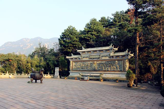 对面的庄严大殿便是古拜经台的大雄宝殿,右上方的巨石便是“大鹏听经”,