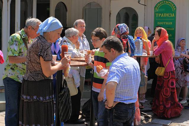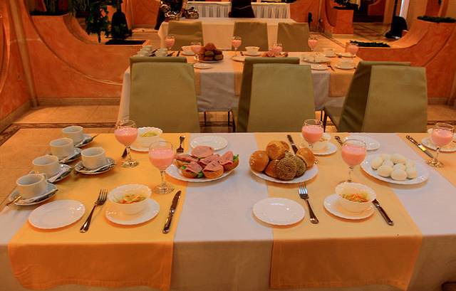 “一只蚂蚁”的早餐定量不“自助”,每人二个小小的“列巴”(俄式面包)、二个鸡蛋、一只菜卷、一蝶盐菜、半杯果汁、一小杯咖啡。如果你不挑食,把这些东西统统吃下去,应付一个上午还是过得去的。
