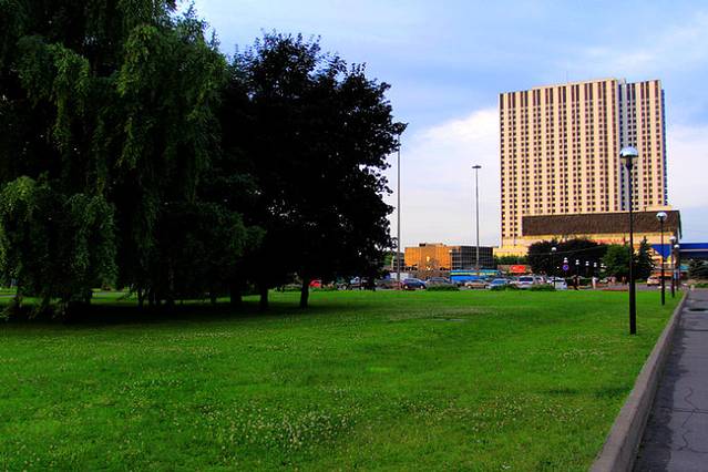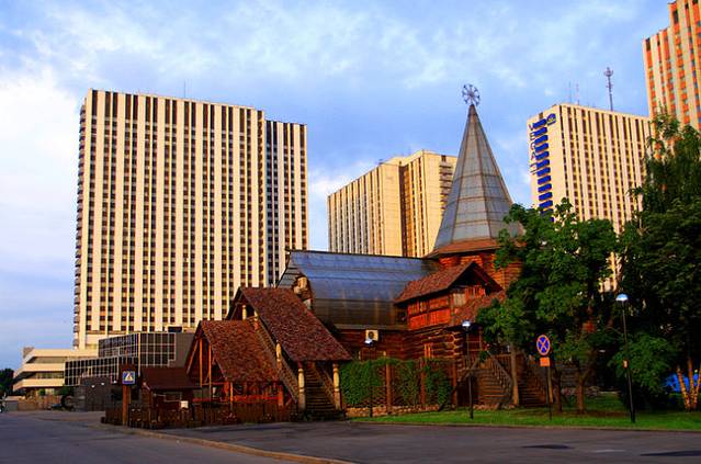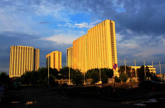 “一只蚂蚁”酒店由五幢高层建筑组成,是1980年作为莫斯科奥运会运动员村建成投入使用的,外表很豪华,墙面上还留有反映运动会题材的浮雕。