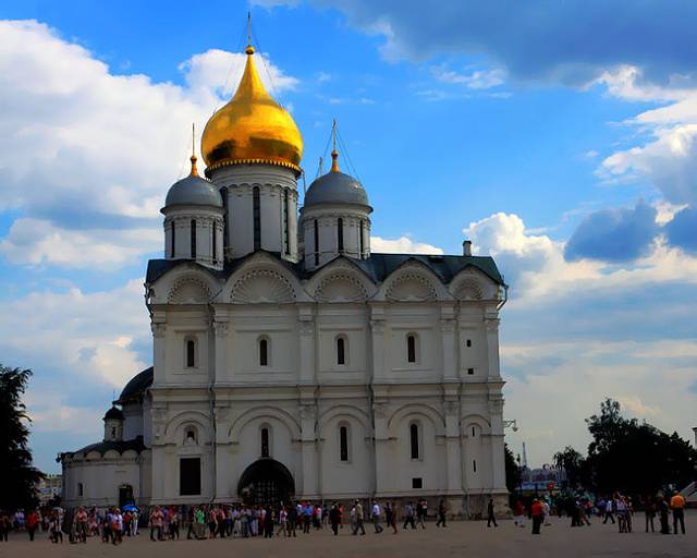 圣母升天大教堂(又名乌斯宾斯基教堂)建于1480年,由意大利建筑师修建。历代大公和沙皇在这里进行加冕典礼,也是历代莫斯科大主教以及后来历代俄罗斯东正教总教主的安葬处。