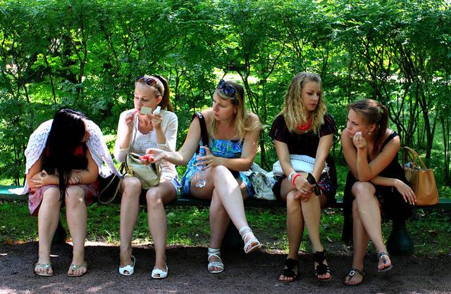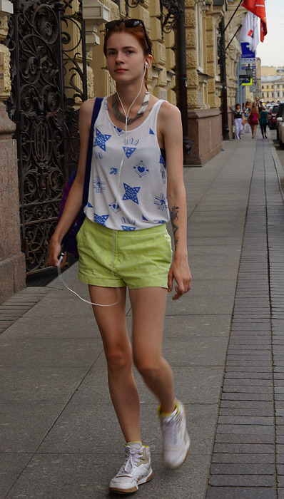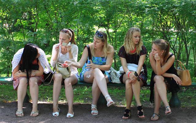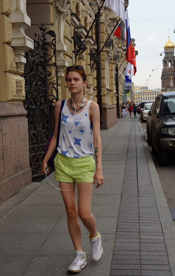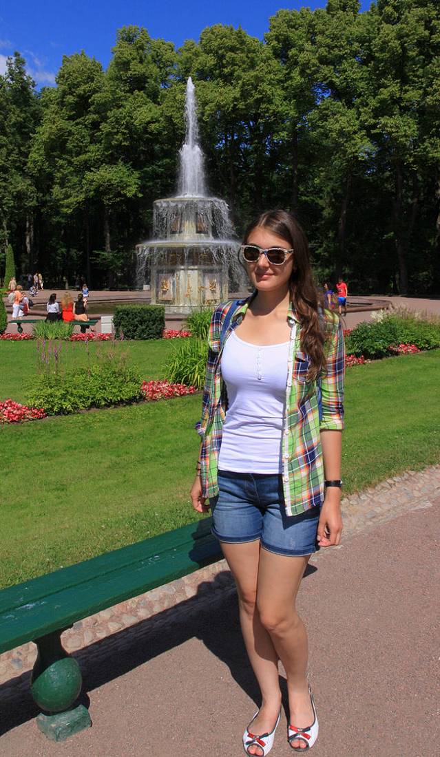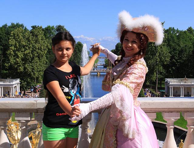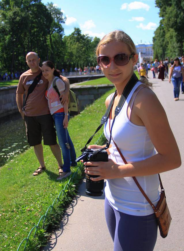 在彼得夏宫这样的名胜,必然是美女扎堆的地方,自然成了一条风景线,不论你有意无意,她都会撞进你的镜头来。
