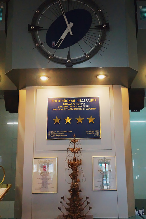 酒店内部装饰也比较新颖,尽管是上世纪八十年代建筑物,现在看起来也还不过时。只是大堂公共区域较小,等待办理入住手续的旅客多数人找不到坐处。而在俄罗斯,办理入住宾馆、进出海关的效率一般很慢。