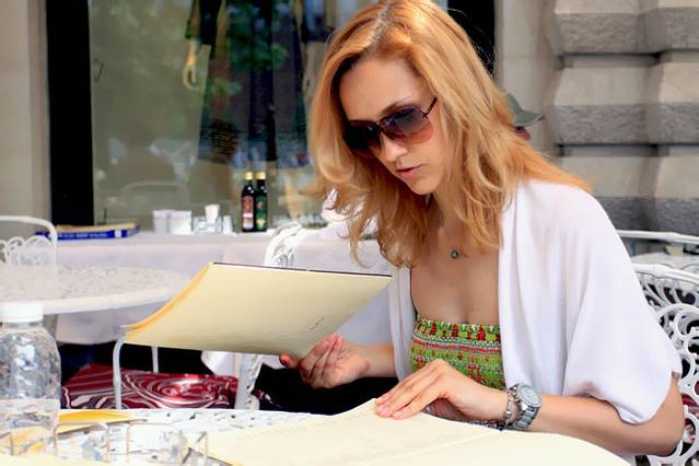 在允许拍照的宫殿书店里抓拍一张俄罗斯美女