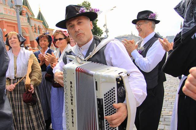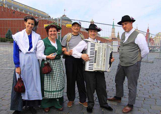 蓦然间,从红场一隅转来高亢的手风琴乐曲,伴随着低沉的男女声合唱。这不是《三套车》吗,我立即听出来,这是苏联时代的著名歌曲。
