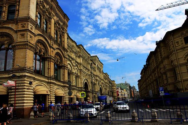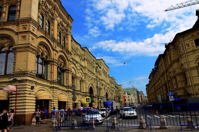 红场的东面也就是列宁墓的对面,坐落着一栋具有典型俄罗斯古典主义风格的建筑,这就是具有百年以上历史的古姆商场。