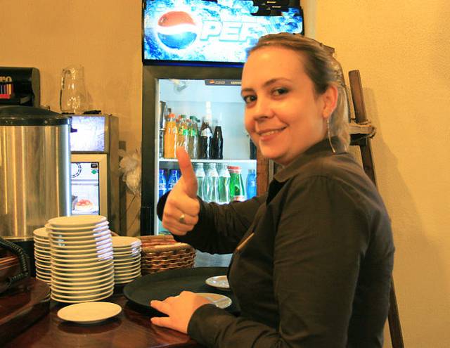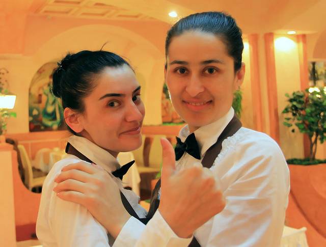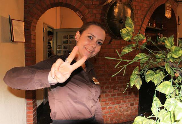 酒店餐厅和酒吧里的美女喜欢客人给她们照相,拍照时会摆出姿势、调整表情。