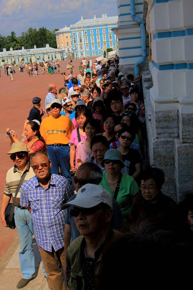 导游安排先去参观大宫殿。参观大宫殿是“自费”项目,每个交人民币400元,按当时官方兑换价折合2120卢布,而大宫殿门票价格实际为550卢布。