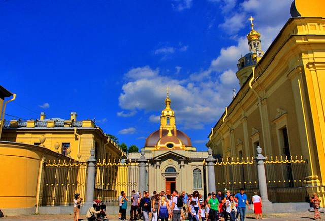 圣彼得保罗要塞和圣彼得堡最高的尖塔建筑彼得保罗教堂,从彼得大帝起,沙皇俄国所有的皇帝都葬在这里。
