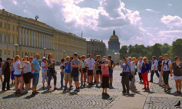 圣彼得堡导游群体中,也是美女如云。在夏宫看到的导游美女,一个比一个漂亮。只是咱们那个团的导游玛丽娅不行,三、四十岁的黄脸婆,说中国话发不准音,满口的倒装语,相机里找不到她的照片。