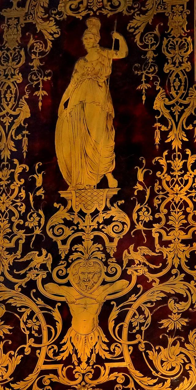 宫中的中国厅,在一系列华丽厅堂中独树一帜,充满东方情趣,令人耳目一新。四壁的木板漆画,雕龙绘凤的瓷壁炉和宫灯,成套的中国瓷器和家具,把人们带入那个遥远神秘的东方国度。