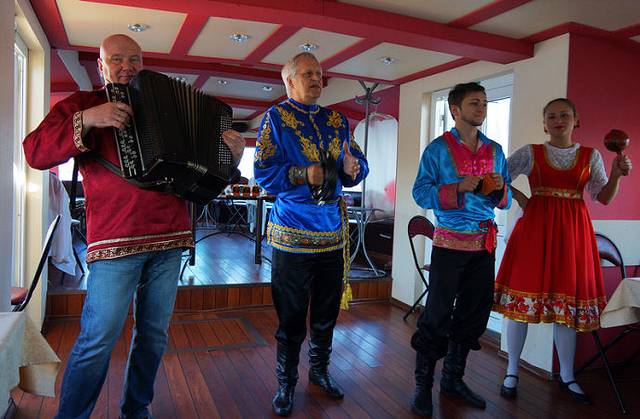 我循着歌声走去,歌声和琴声是从一群俄罗斯老人中发出的。