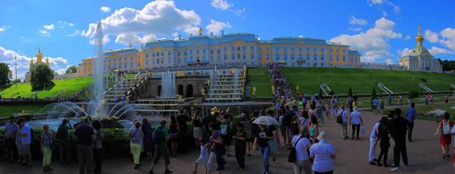 站在宫殿前面的位置,对喷泉、运河和波罗的海风光一览无遗。