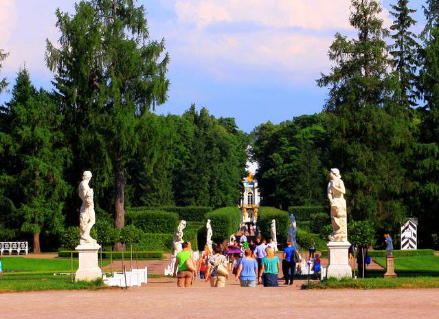据说彼得大帝在建设彼得保罗要塞时经常来往这一带,他看到这里自然环境优美,风光迷人,景色秀丽,萌发了在这里修建宫殿的念头。