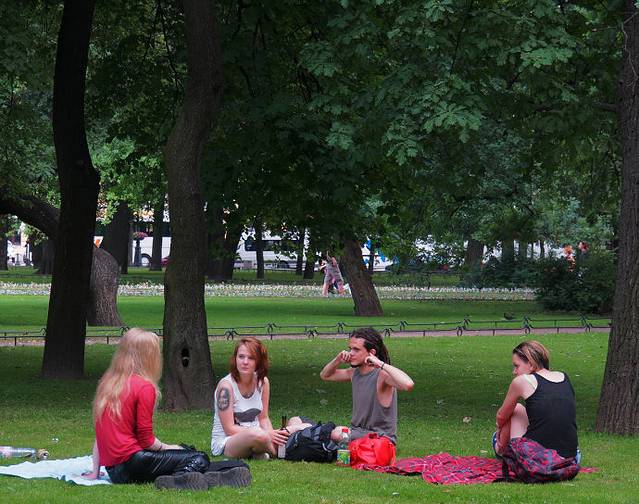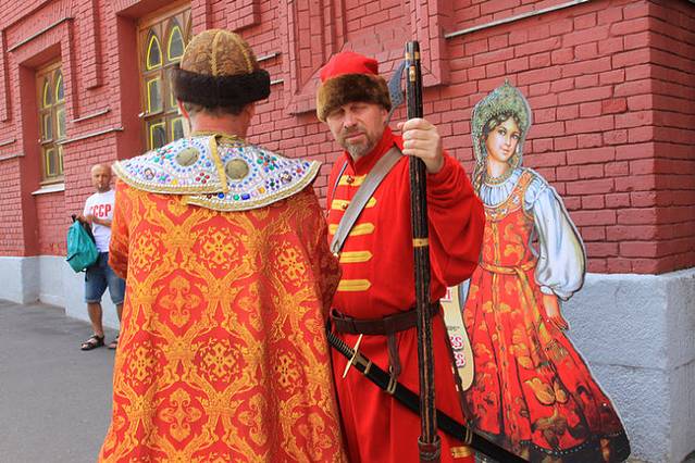 在乐曲告终的间隙,一位老年妇女从口袋中拿出一摞泛黄的照片,边展示照片边在人群中大声讲述着什么,周围的俄罗斯老人表情也凝重起来。我不会俄语,什么也听不懂,不过看到那些五十、六十年代红场、克里姆林宫的老照片,我猜想她一定是在回忆那个伟大的“苏维埃”帝国,告诉人们不要忘记过去__“忘记就意味着背叛”!
