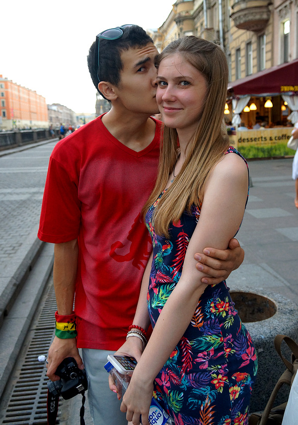 给一对俄罗斯情侣来一个“特写”,潜台词:你好,中国人!