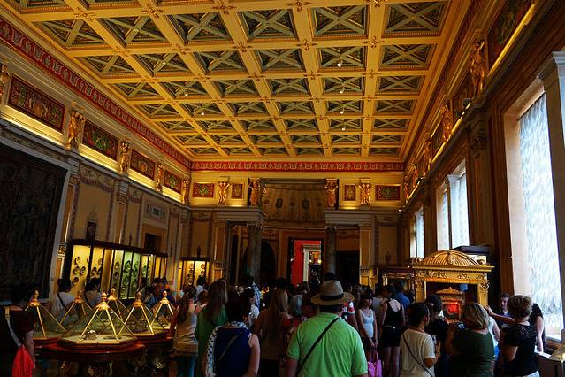 艾尔米塔什博物馆设原始文化、古希腊与罗马世界、东方民族文化、俄罗斯文化史、钱币、西欧艺术、科学教育和修复保管等八个部。珍藏的历史文物与艺术品,共约270万件之多,据说,要看完这么多藏品,得花费27年的时间。