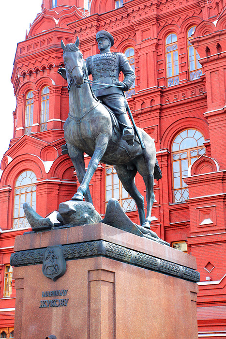 在国家博物馆北侧有一座在纪念二战胜利50周年时(1995年)铸造的朱可夫的雕像。苏联元帅朱可夫是二战英雄、俄罗斯人民心中的战神,在苏联解体十多年后的“普京”时代铸造他的雕像,体现了俄罗斯人对历史的尊重。