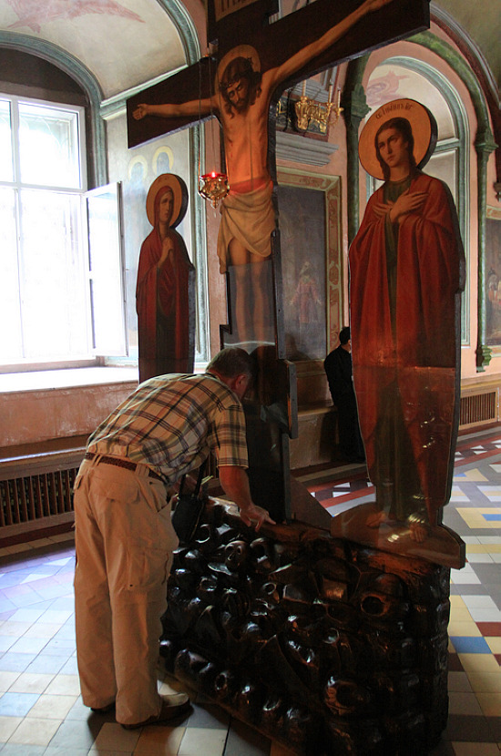 十二使徒教堂(大天使教堂)是君王们的陵寝(沙俄迁都圣彼得堡之后,历代皇帝改葬在圣彼得堡的圣彼得保罗大教堂)。我们进入大天使教堂参观,看到一排排的历代沙皇棺椁,感到阴森森的。讲解员说,沙皇的尸骨都在地下几十米深处,棺椁实际上是空的。