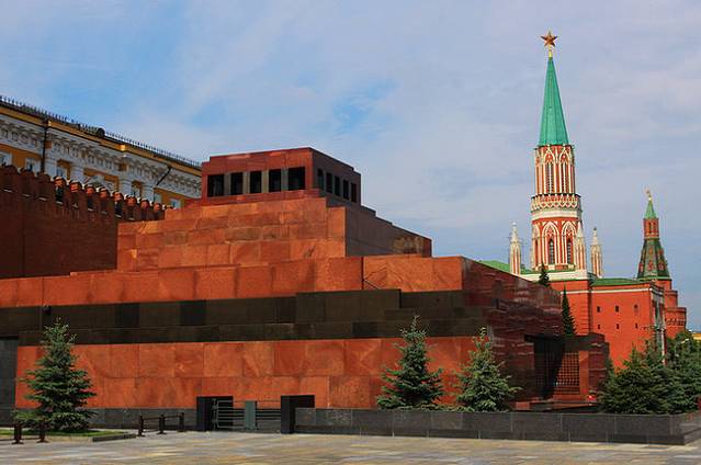 一九三○年,由建筑师亚历山大·舒舍夫设计的列宁陵墓坐落在红场的正中。以红色花岗石砌成镶以黑色长石的建筑,即为安放列宁水晶棺的列宁墓。