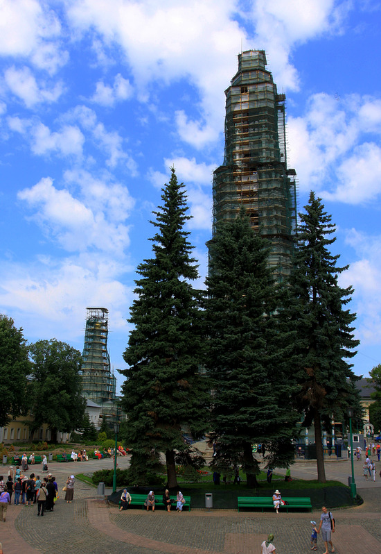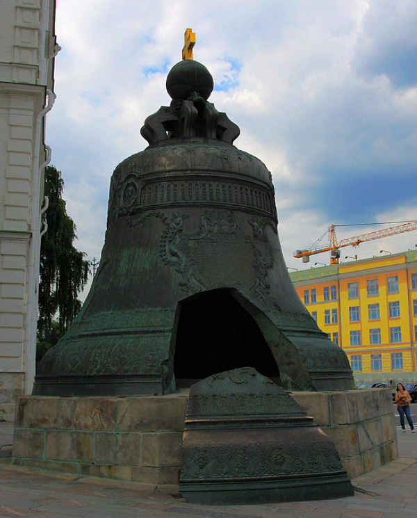 在钟楼外陈列着一口高6.14米,直径6.6米,重达200多吨的大钟,表面上刻有浮雕、人像和题词,称为“钟王”。它是18世纪时由200多名俄国的能工巧匠费了两年时间铸造成的,是俄国铸造工艺的纪念碑,据说当时为了得到最佳音色,除用铜和锡外,还加了几公斤金和银。但它铸成后敲第一下时就出现了裂痕成了废品,《美国百科全书》称它为“世界上从未敲响的钟”。