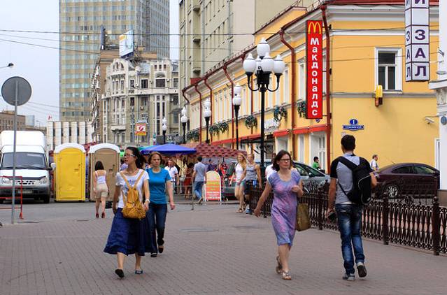 在红场要上厕所必须得到“古姆”去,商场三楼的卫生间富丽堂皇,干净卫生而且不收费。在莫斯科,公厕都是收费的,一次25卢布,约合5元人民币。
