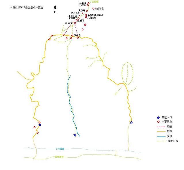 交通:在西安火车站有直达太白山的大巴车,票价35元。外地游客可先到火车站,再转乘大巴前往。