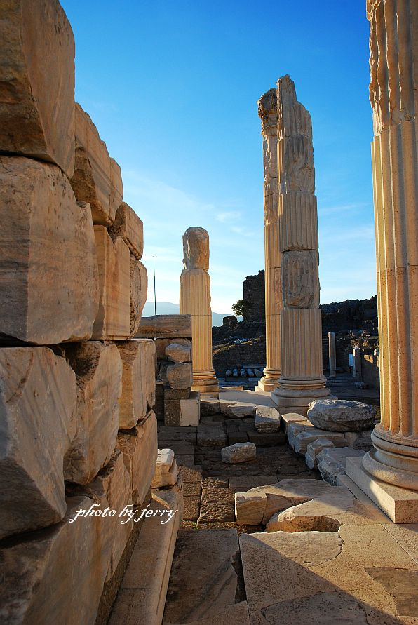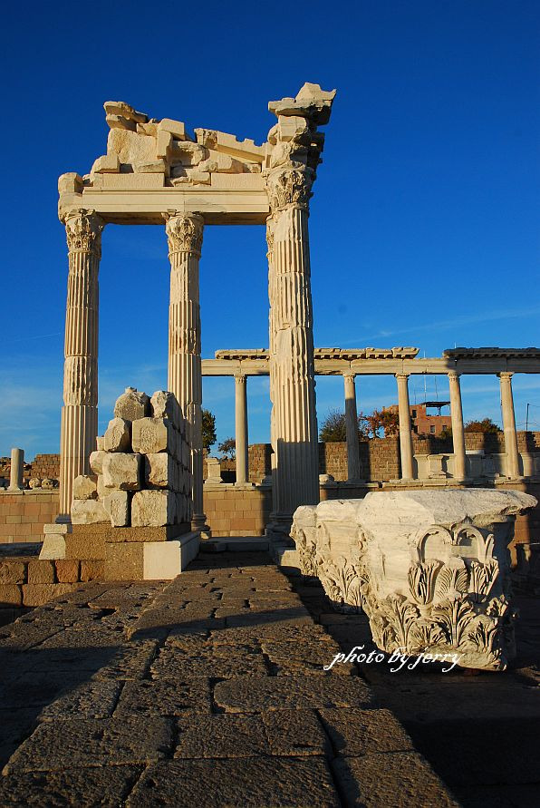 沿着土耳其西部爱琴海一带有许多古代名城,但频繁的战争与自然灾害,使那些古城渐渐退出了历史舞台,大部分退缩为一个小村庄,有的甚至只是在文学作品中出现,以后再通过考古发掘来进行考证,比如特洛伊城。贝尔伽马,从特洛伊时代起便是一座城镇,希腊人称之为帕伽马(Pergamon)。如今人们熟知的特洛伊之战,是一场发生在公元前1250年、古希腊军队与特洛伊城之间的战争,并在以后由荷马以史诗的形式记录并流传下来,可见当时希腊势力对安纳托利亚的影响。而安纳托利亚半岛东面的另一个古典帝国波斯,自然不能容忍自家后院变成希腊的势力范围,于是出手并很快控制了局势,以后波斯军队又借故直取希腊大陆,结果惨败于马拉松,但却也酝酿出了现代的马拉松运动。历史就是这样,由时间与故事堆砌起来,太过久远的东西不但容易遗忘,有时候难免令人乏味。但当人们通过千丝万缕的线索将一些著名事件与我们当今生活联系在一起的时候,却又那么的兴奋,仿佛抬手已经触摸到了历史深处的那一刻。